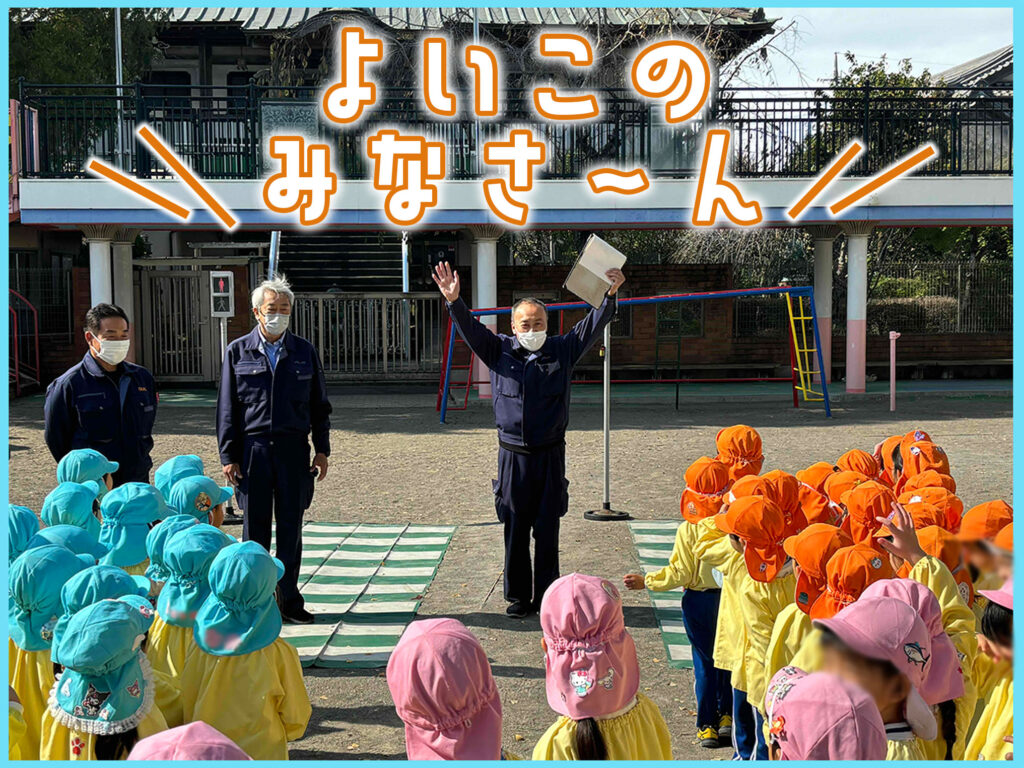 今回は、千葉県佐倉市の慈光幼稚園様にお伺いして、園児のみんなと楽しく交通安全についてお勉強しました。